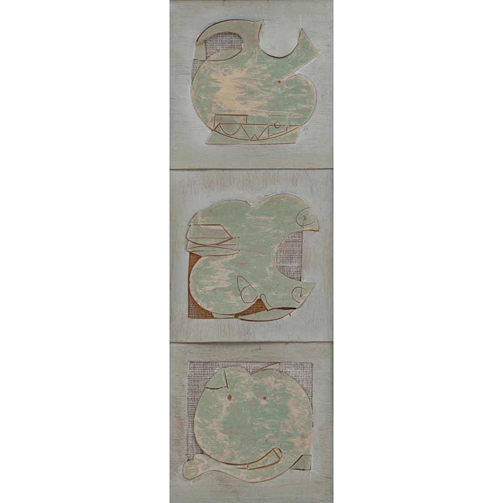 inscribed with the artist's name, the title, and 'SG Oorsig' on a Pretoria Art Museum label adhered to the reverse; inscribed with the title 'Monoliths I', the date and the medium on a label adhered to the reverse | |