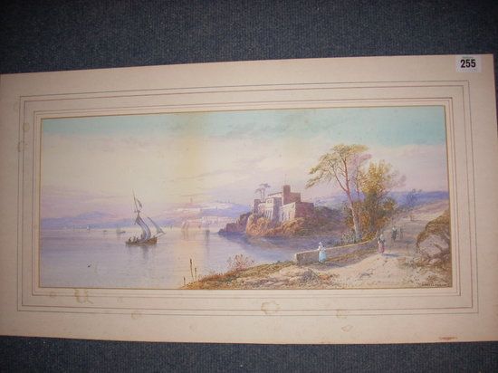 Mediterranean coast with sailing vessels and fort