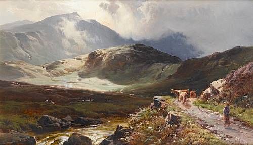 Highland scene with cattle and drover; Lake scene with cattle and drover