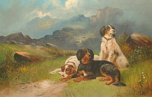 Setters in a highland landscape