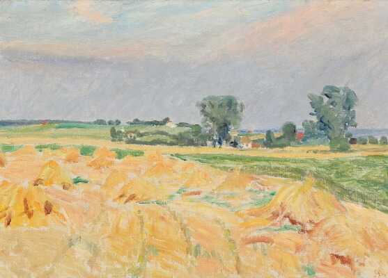 Landscape with haystacks