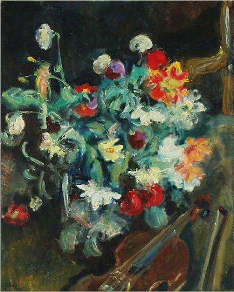 Still life with flowers and a violin