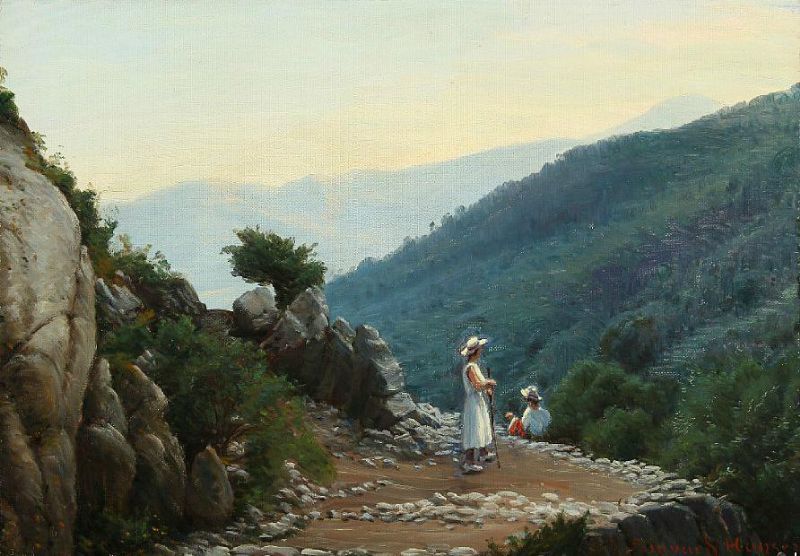 A mountain landscape with figures