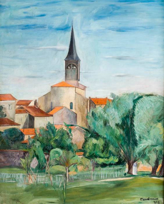 Pejzaż z wieżą kościoła