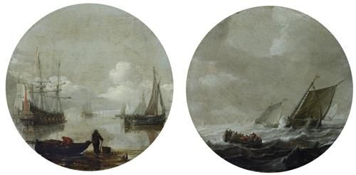 | Pair of works: sailing ships on a stormy sea/sailing ships and frigates on a calm sea | |