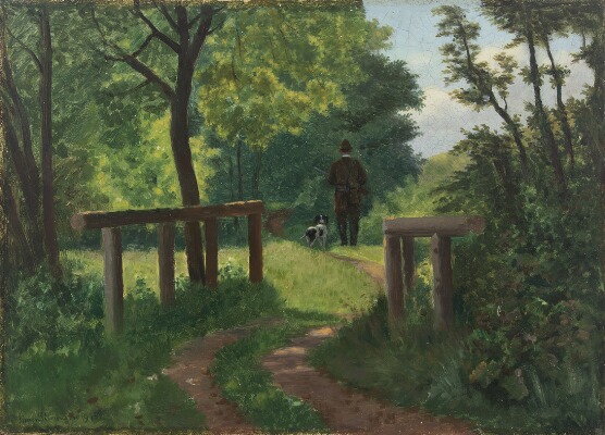 “Engen ved Skovly”. A hunter with his dog