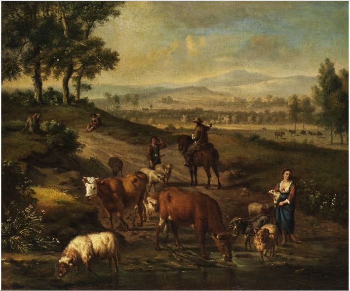 LANDSCHAFT MIT KÜHEN, SCHAFEN, ZIEGEN UND HIRTEN