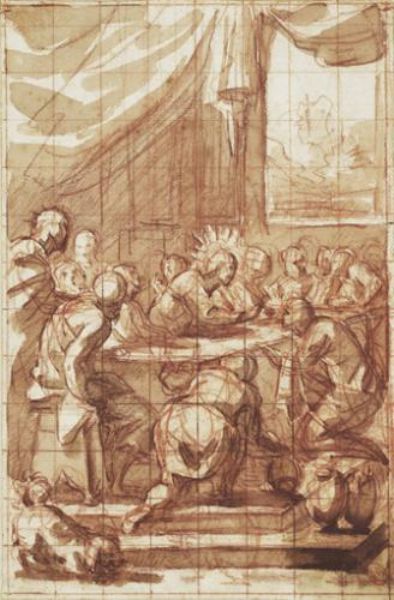 | Chalk RED CHALK, BROWN WASH, SQUARED WITH RED AND BLACK CHALK | |
