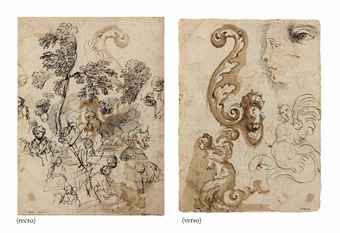 | Studies of trees, a mother and child, other women, and figures kneeling forward (recto), Studies of a harpy, a scroll design, a | |