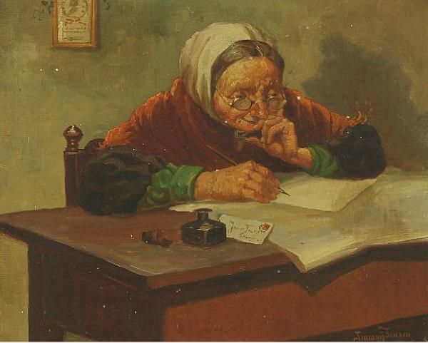 Interior with old woman writing a letter