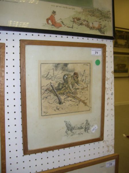 | Hit", a World War I soldier crossing the Front Line, colour print, bears gallery label verso | |