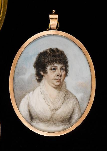 Watercolor on ivory, gold frame, oval