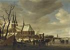 | A WINTER LANDSCAPE, WITH SKATERS ON A FROZEN RIVER BY A CHURCH | |