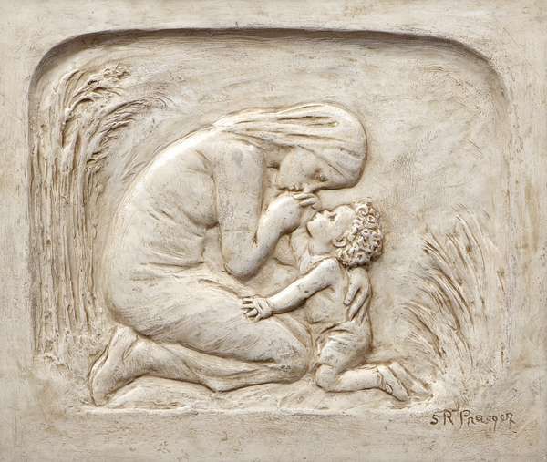 A Mother's Touch Plaster relief plaque in an oak frame