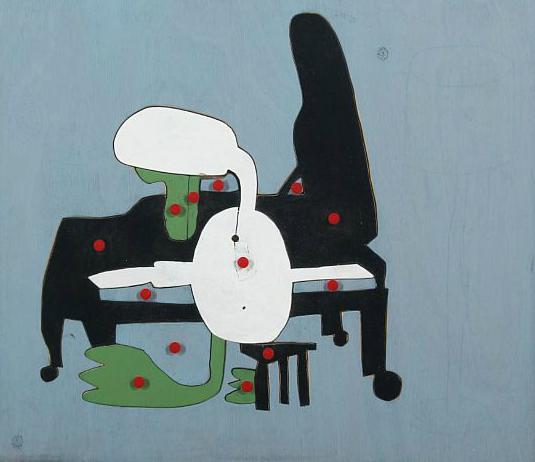 | Painting A wall mounted wooden relief with painted cut-outs, mounted with red tacks | |
