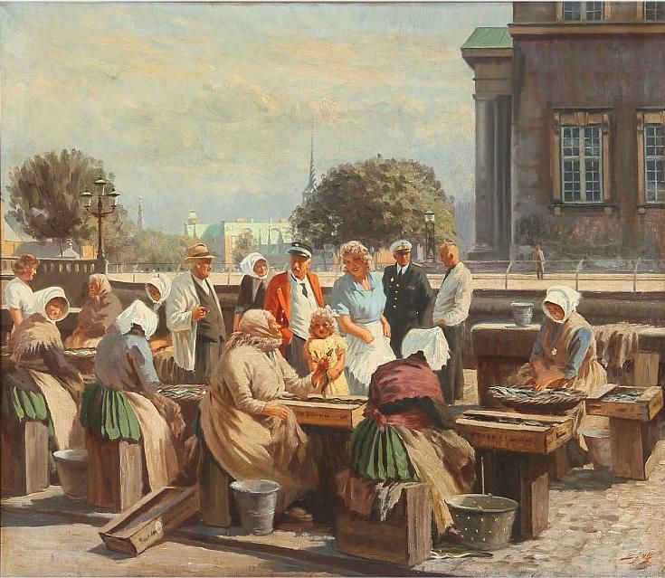 | Fishermen's wife selling fish at Gl. Strand in Copenhagen. | |