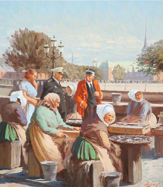 Fishermens' wifes are selling fish in Copenhagen.