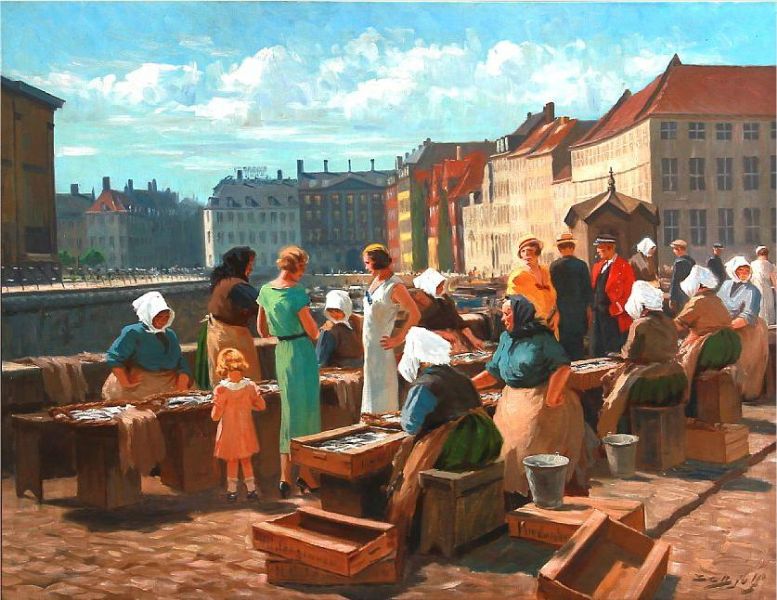 | Fishermens' wifes sells fish at Gl. Strand in Copenhagen, sommertime | |