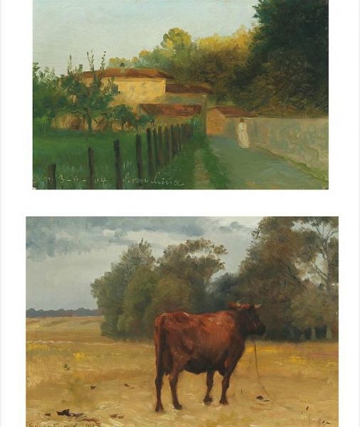 Italian monastery garden and cow in the field.