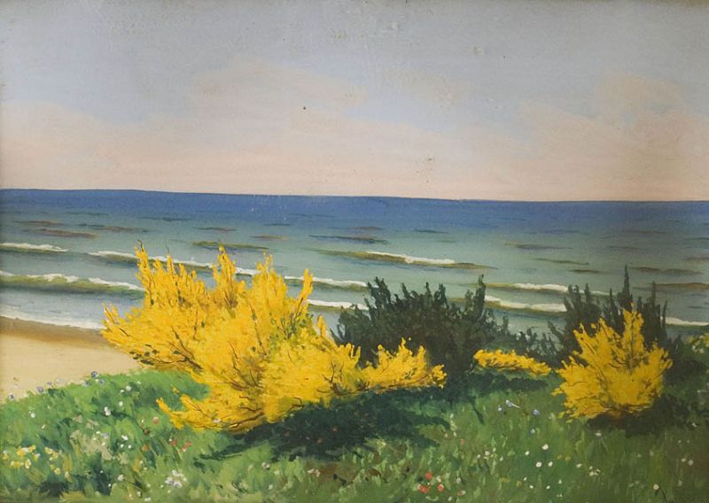 PEJZAŻ NADMORSKI Z KRZEWAMI ŻARNOWCA