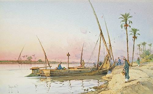 Vue des chameaux à l'Abbassieh; Dahabiehs sur le Nil (a pair)