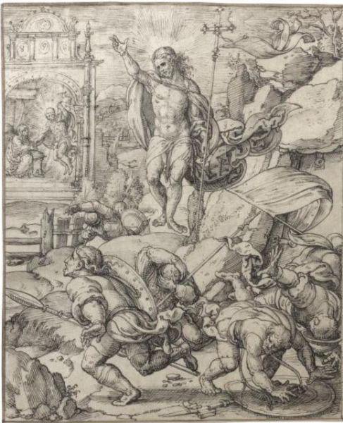 | Pen and brownish-black ink and gray wash, within brown ink framing lines, on vellum | |