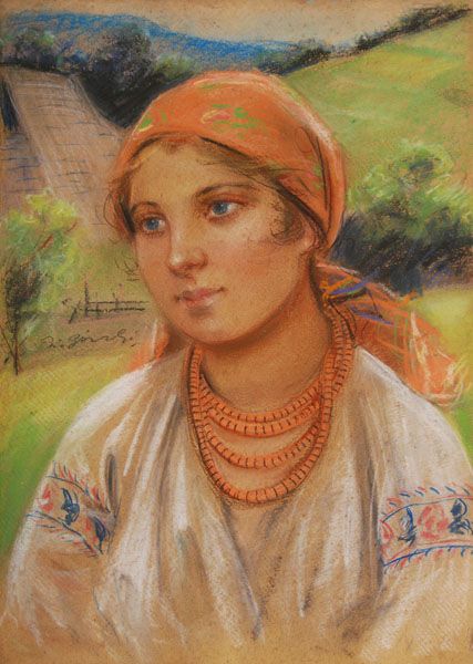 Portret młodej góralki w białej bluzce