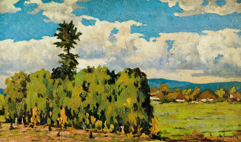 PEJZAŻ PODGÓRSKI Z LASKIEM BRZOZOWYM