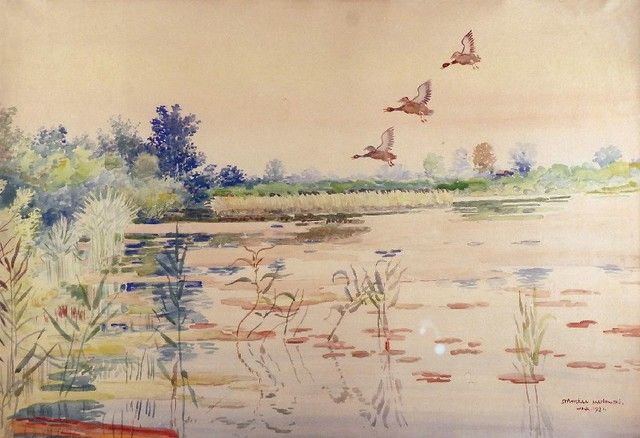 Pejzaż nadwodny z lecącymi kaczkami,1921