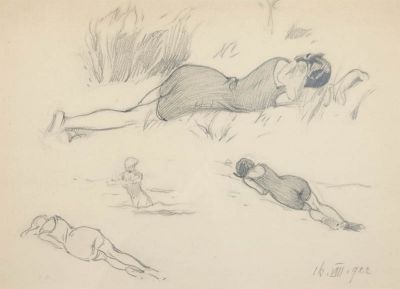 SZKICE - LEŻĄCA KOBIETA W STROJU KĄPIELOWYM, 1922 R.