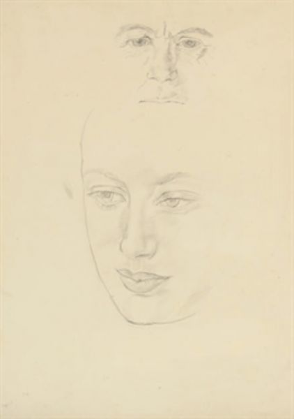 Studies of a male and a female head