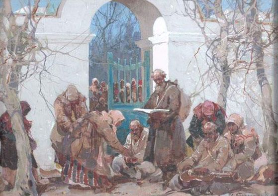 | Les mendiants à la porte de l'Eglise, 1917 | |