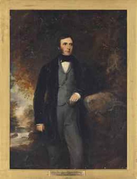 | Portrait of Henry Prittie, 3rd Baron Dunalley (1807-1885), standing three-quarter length in a black coat and grey waistcoat by a | |
