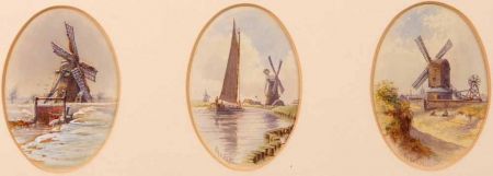 Wherry Passing a Mill; Windmill at Winter; and Figures Resting