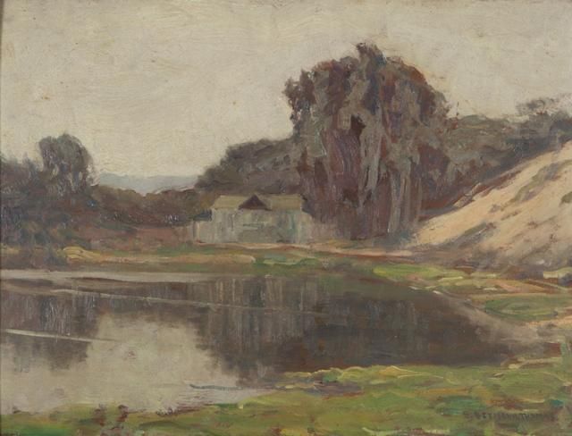 ''A Quiet Hour - Del Norte'', house near a pond