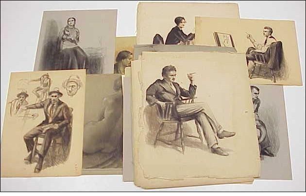 Charcoal conte crayon, pen and ink, and pastel,