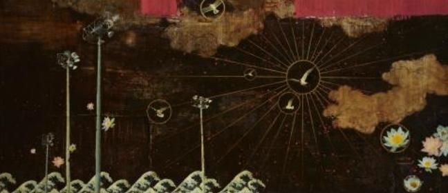 ILLUMINATED BIRD OF INSIGHT WITH SEARCHLIGHTS