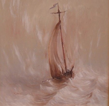 sailing ship in a storm with rough seas