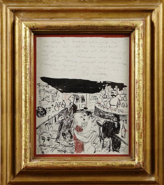Teckning med brev, barinteriör