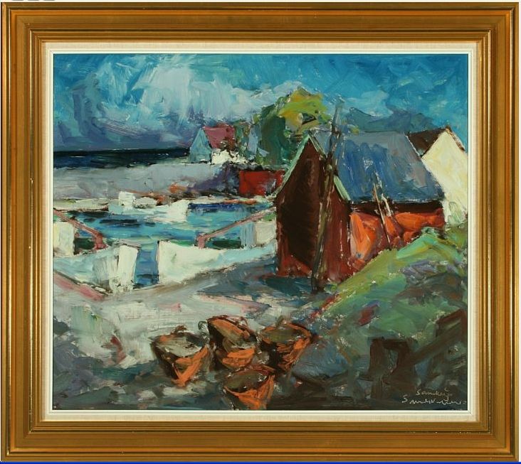| Coast scenery with houses and boats from Sandvig, Bornholm. | |