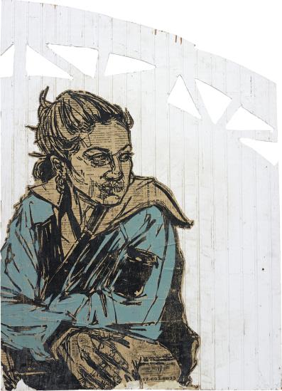 Paper paper collage and paint on wood