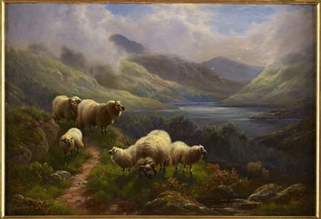 SHEEP GRAZING IN A HIGHLAND LANDSCAPE
