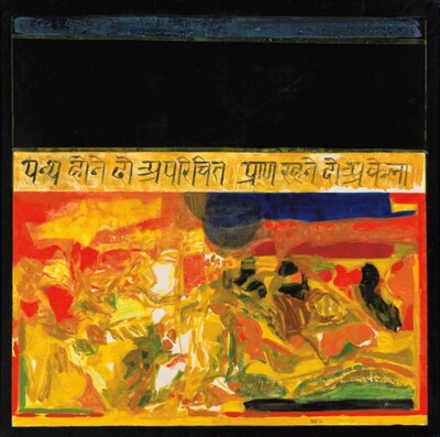 signed and dated 'RAZA '68' (lower right); further signed, inscribed, dated and titled 'RAZA / P_774 '68 / "Inconnu"' (on the reverse)
