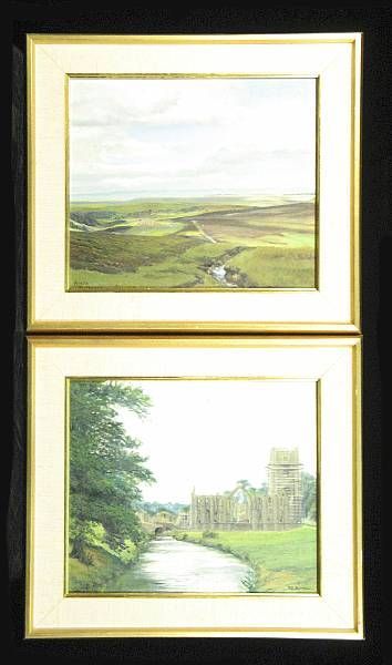 | A view of Fountains Abbey, Yorkshire; A view of Grinton Moor, West Riding, Yorkshire | |