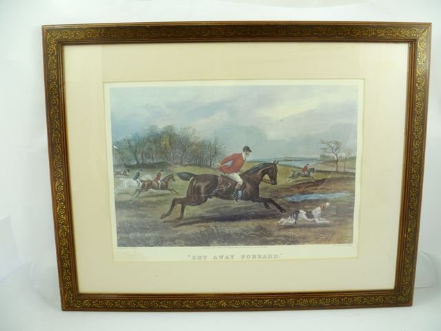 A set of three hunting prints Get Away Forrard, A Check, and A Pleasant Ride Home