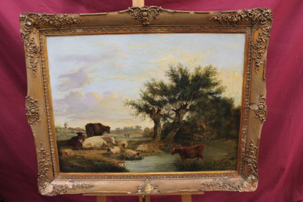 cattle and sheep watering in extensive landscape