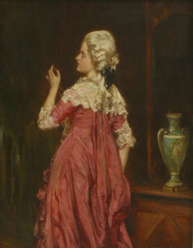 | 'THE MINIATURE' - THREE-QUARTER LENGTH PORTRAIT OF A LADY IN A PINK DRESS | |
