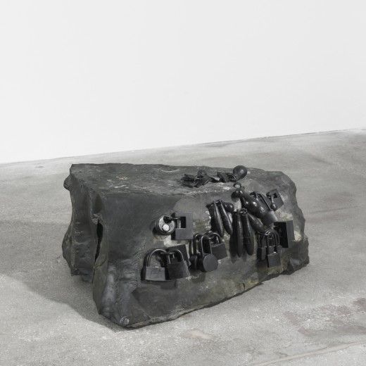 Stone with cast metal