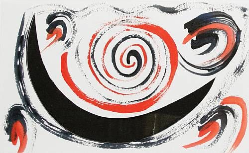 Red and black spiral with crescent