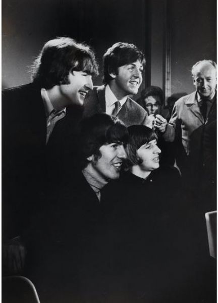 | The Beatles being interviewed after receiving controversial Medal of the British Empire (MBE) Award | |